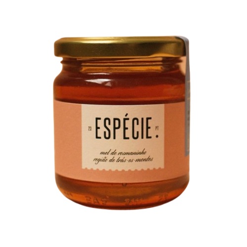 Frasco de mel em vidro com rótulo ESPÉCIE PF.