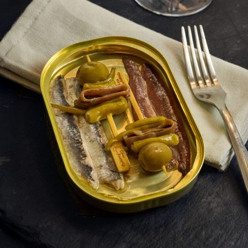2x Gildas de Anchoa do Cantábrico: o clássico pincho basco, pronto para saborear.