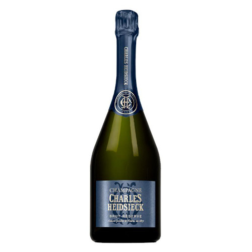 Garrafa de champanhe Charles Heidsieck com rótulo azul escuro