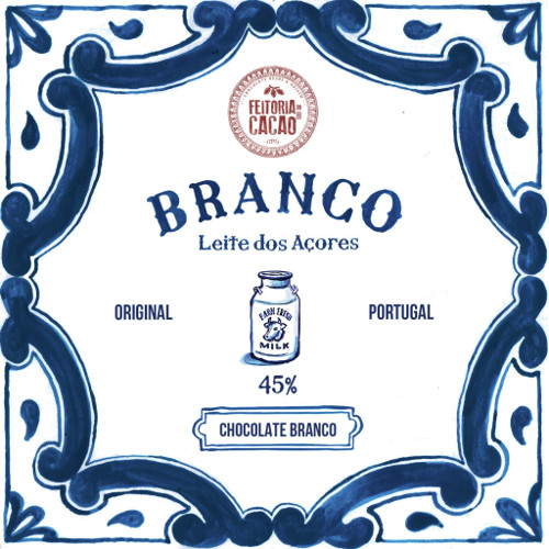 A Feitoria do Cacao elaborou uma receita original de chocolate branco, para realçar o paladar único do leite dos Açores, combinando a manteiga de cacau natural com a quantidade de açúcar bastante reduzida, sem aromatizantes, nem emulsionante (como todos os chocolates da nossa marca). Doce, mas equilibrado, onde se apreciam a riqueza e o sabor puro do Leite açoriano em forma de tablete.