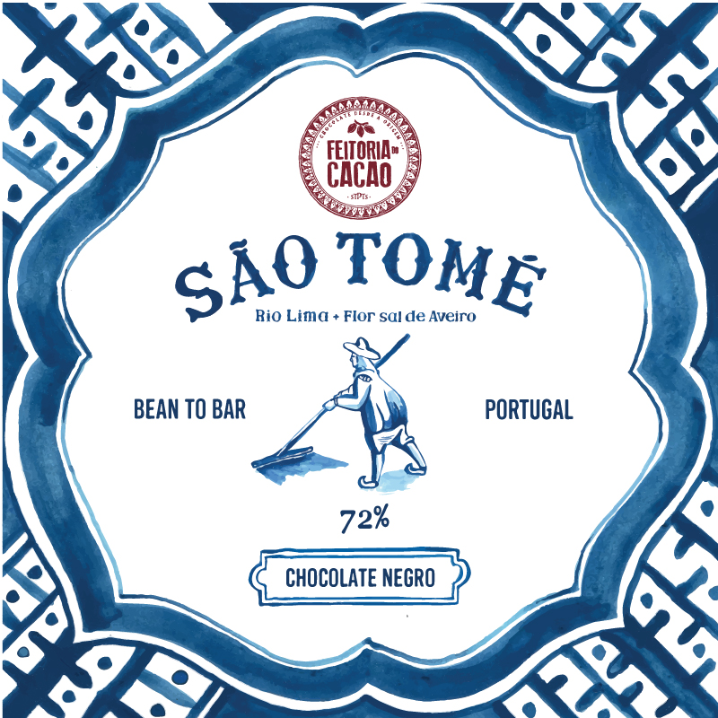 No início do século XIX, o cacau que existia só na América Latina, foi levado primeira vez para São Tomé e Príncipe pela mão dos portugueses, e desde então começou a grande plantação de cacau em África. O cacau de São Tomé que partilhamos com a história dos descobrimentos, encontrou-se com a Flor de Sal do Oceano Atlântico. Esta Flor de Sal é produzida nas salinas de Aveiro, onde está instalada a FEITORIA DO CACAO, e onde ainda hoje se trabalha à mão (para recolher apenas o sal de superfície, a melhor parte do sal marinho. No sabor intenso e frutado do chocolate negro 72%, o grão da flor de sal acrecenta um travo divinal com o sabor do Oceano. Assim, esta combinação realiza um paladar irresistível.