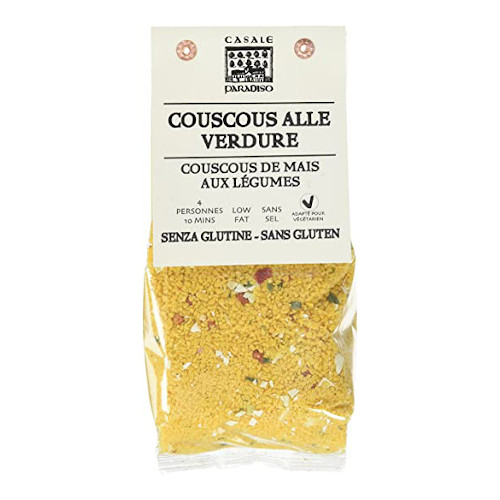 Ingredientes: Couscous (farinha de milho) 98%, vegetais 2% (courgete, cenoura, couve , feijão verde, pimentão, chalota, cebolinho, salsa)