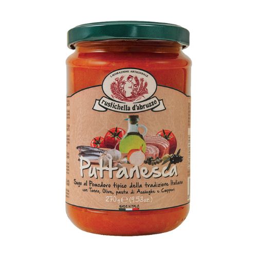 Molho pronto para servir, feito com a fervura lenta da polpa de tomate, com atum, azeitonas, creme de anchova, alcaparras, cebola e azeite de oliva extra virgem da área de Aprutino Pescarese. Recomendamos, absolutamente, a combinação com Rustichella d'Abruzzo Lumaconi e Paccheri. Para ser consumido em temperatura ambiente ou ligeiramente aquecido em fogo baixo. Após a abertura, mantenha no frio e consuma dentro de 3-4 dias. Produto para 2-3 pessoas.