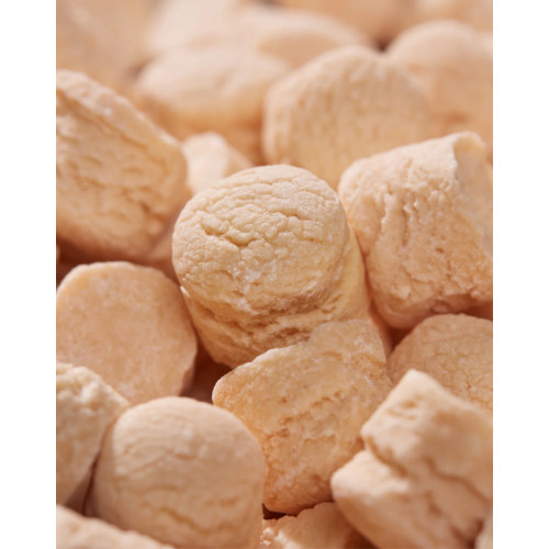 Marshmallows brancos com textura rugosa próximos uns dos outros