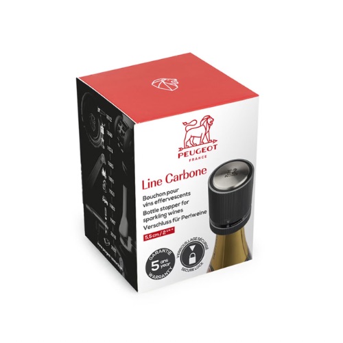 A rolha Line preserva hermeticamente as garrafas de champanhe, crémant, cava, espumantes, sidra ou prosecco. Os aromas, sabores e efervescência são assim conservados durante vários dias após a abertura da garrafa. O seu sistema de fecho é intuitivo e simples, para um armazenamento em total segurança. Este elegante acessório é revestido por uma capa de alumínio estriada com um efeito gráfico muito bonito. Prolongue a degustação graças à rolha Line Peugeot!