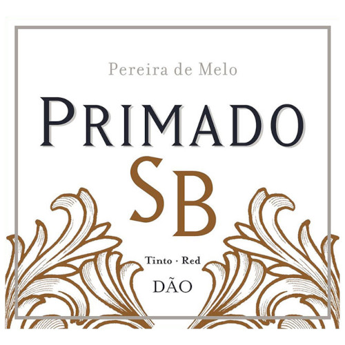 Garrafa de vinho tinto PRIMADO SB DÃO 2021 com rótulo branco e detalhes dourados.