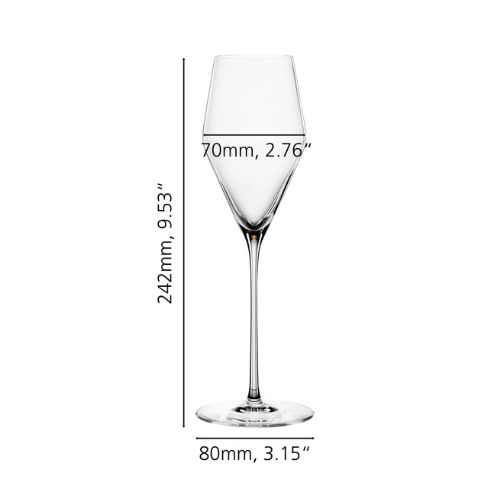 Este copo é perfeito para champanhes leves, frescos e secos, proseccos e vinhos espumantes.